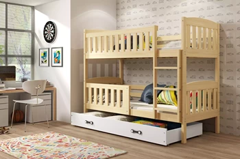 Pat supraetajat junior KUBUŚ 90X200 cu saltea și sertar, pin/alb