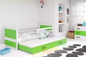 RICO 80X190 pat extensibil pentru tineri cu sertar, alb/verde