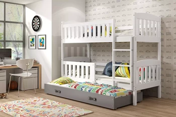 Pat de tineret pentru trei persoane KUBUŚ 90X190 cu sertar, alb/grafit