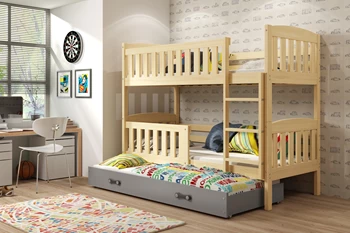 Pat de tineret pentru trei persoane KUBUŚ 90X200 cu saltea și sertar, pin/grafit