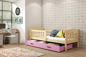 KUBUŚ 90X200 pat single pentru tineri cu saltea și sertar, pin/roz
