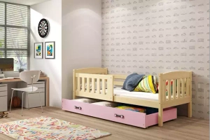 Jacquot pat adolescent single 90x190 cu saltea și sertar, pin / roz