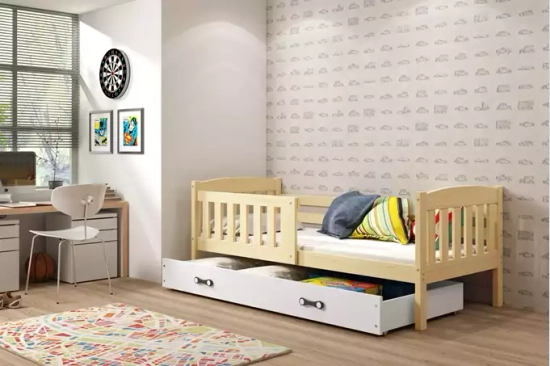 Jacquot pat adolescent single 90x190 cu saltea și sertar, pin / alb