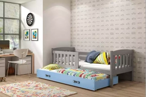 Jacquot 90x190 pat trundle adolescent cu saltea și sertar, gri/albastru