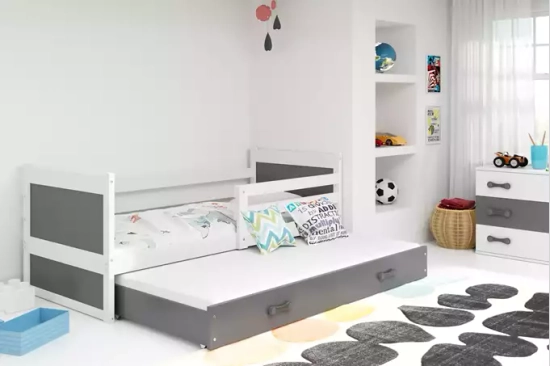 Rico teen pat trundle 90x190 cu sertar, alb/gri