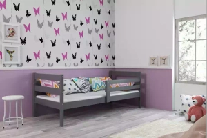Éric pat single pentru adolescenți 90x190 cu saltea, gri