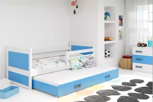 Rico teen pat trundle 90x190 cu saltea și sertar, alb/albastru