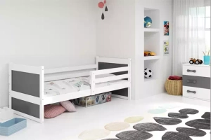 Rico pat single pentru adolescenți 90x190 cu saltea, alb/gri