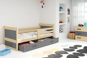 Pat single pentru tineri RICO 90X200 cu saltea și sertar, pin/grafit