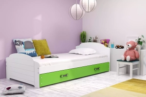 Pat single pentru tineri LILI 90X200 cu saltea și sertar, alb/verde
