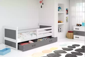 Rico pat single pentru adolescenți 90x190 cu sertar, alb/gri