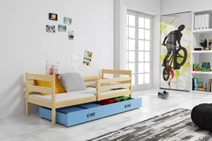 ERYK 80X190 pat single pentru tineri cu sertar, pin/albastru