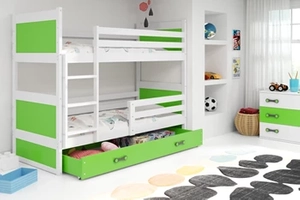 Pat supraetajat junior RICO 90X200 cu saltea și sertar, alb/verde