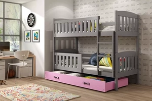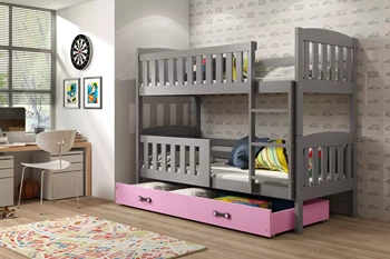 KUBUŚ 90X200 pat supraetajat de tineret cu sertar, grafit / roz