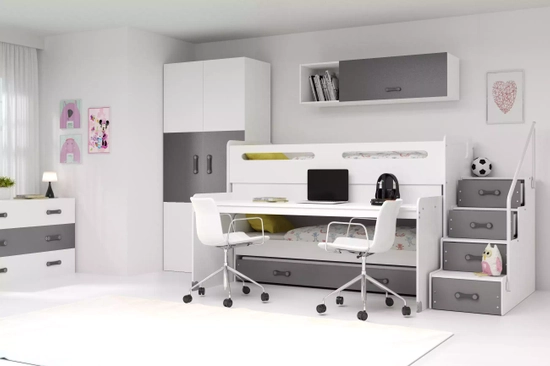 MAX 1 80X200 pat triplu pentru tineri cu birou, grafit
