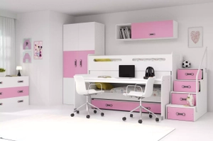 MAX 1 80X200 pat triplu pentru tineri cu birou, roz