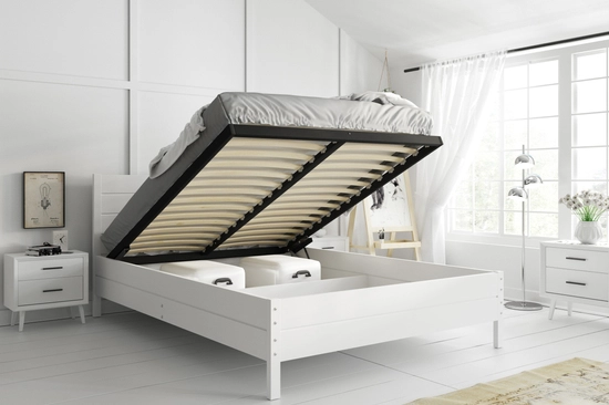 Dormitor pat LOFT 140X200 cu saltea și container, din lemn de stejar