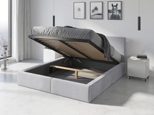 Pat tapițat pentru dormitor HILTON 120X200 cu cutie de depozitare, gri cenușă