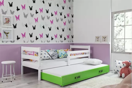Éric 90x190 pat trundle pentru adolescenți cu saltea și sertar, alb/verde