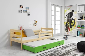 Pat extensibil pentru tineri ERYK 80X190 cu sertar, pin/verde