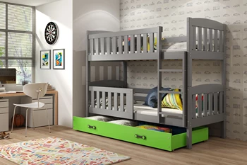 Pat supraetajat KUBUŚ 90X190 cu saltea și sertar, grafit/verde