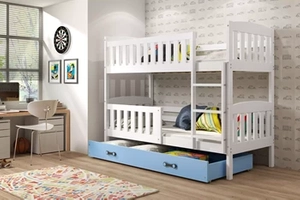 Pat supraetajat junior KUBUŚ 90X200 cu sertar, alb/albastru