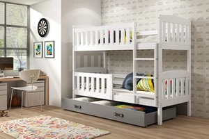 Pat supraetajat junior KUBUŚ 90X190 cu saltea și sertar, alb/grafit
