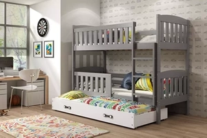 KUBUŚ 90X200 pat triplu pentru tineri cu sertar, grafit/alb