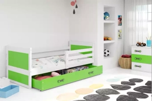 RICO 90X200 pat extensibil pentru tineri cu sertar, alb/verde