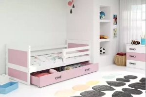 Rico pat single pentru adolescenți 90x190 cu saltea și sertar, alb/roz