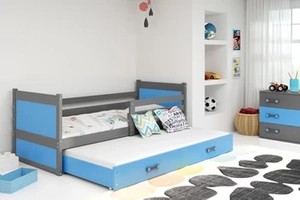 RICO 90X200 pat extensibil pentru tineri cu saltea și sertar, grafit/albastru