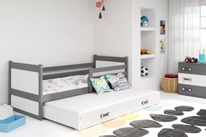 Pat supraetajat Rico 90x190 cu sertar, gri/verde