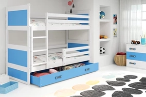 Pat supraetajat pentru tineri RICO 90X200 cu saltea și sertar, alb/albastru