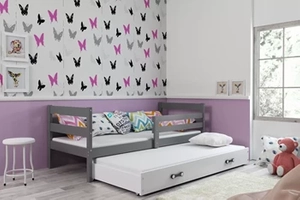 Pat extensibil pentru tineri ERYK 90X200 cu sertar, grafit/alb