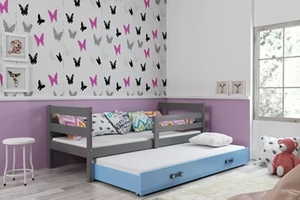 Pat extensibil pentru tineri ERYK 90X200 cu sertar, grafit/albastru