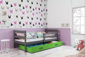 Éric pat single pentru adolescenți 90x190 cu sertar, gri/verde