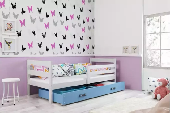 Éric 90x190 pat single pentru adolescenți cu sertar, alb/albastru