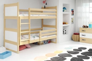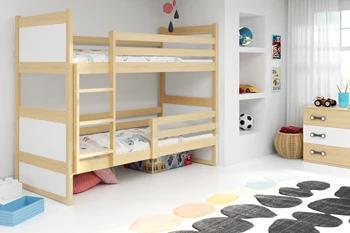 Pat supraetajat pentru tineri RICO 90X200 cu saltea, pin/alb