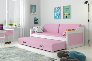 DAWID 90X200 pat de tineret extensibil cu saltea și sertar, alb/roz