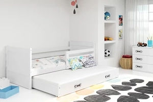 Pat extensibil pentru tineri KUBUŚ 80X190 cu sertar, pin/alb