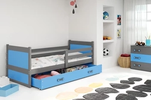 Pat single pentru tineri RICO 90X200 cu saltea și sertar, grafit/albastru