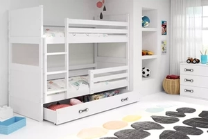 Pat supraetajat pentru tineri RICO 90X200 cu sertar, alb