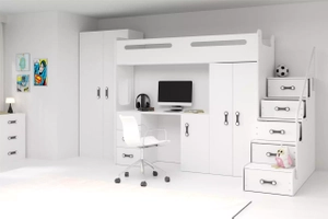 MAX 4 80X200 pat single pentru tineri cu saltea și birou, alb