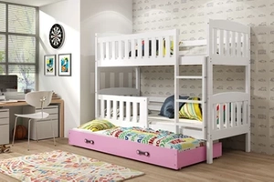 KUBUŚ 90X190 pat triplu pentru tineri cu sertar, alb/roz