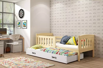Pat extensibil pentru tineri KUBUŚ 90X200 cu saltea și sertar, pin/alb
