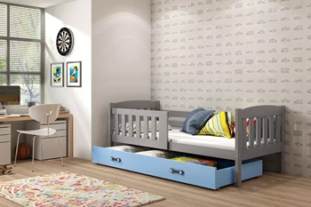 KUBUŚ 90X200 pat de tineret single cu sertar, grafit/albastru