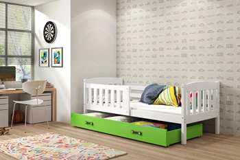 KUBUŚ 90X200 pat de tineret single cu saltea și sertar, alb/verde