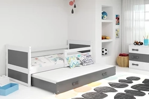 RICO 90X200 pat extensibil pentru tineri cu saltea și sertar, alb/grafit