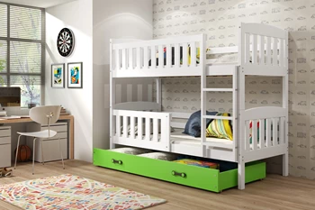 Pat supraetajat junior KUBUŚ 90X190 cu saltea și sertar, alb/verde