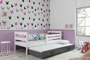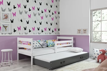 Pat extensibil pentru tineri ERYK 80X190 cu sertar, alb/grafit